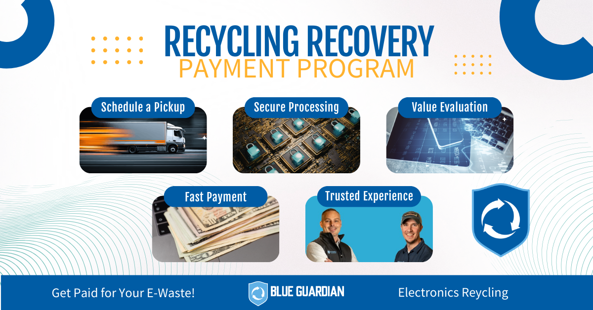 At Blue Guardian Electronics Recycling, we see it every day. We’ve had devices come in with passwords still taped to the keyboard and find data-containing drives inside everything from printers to network gear.